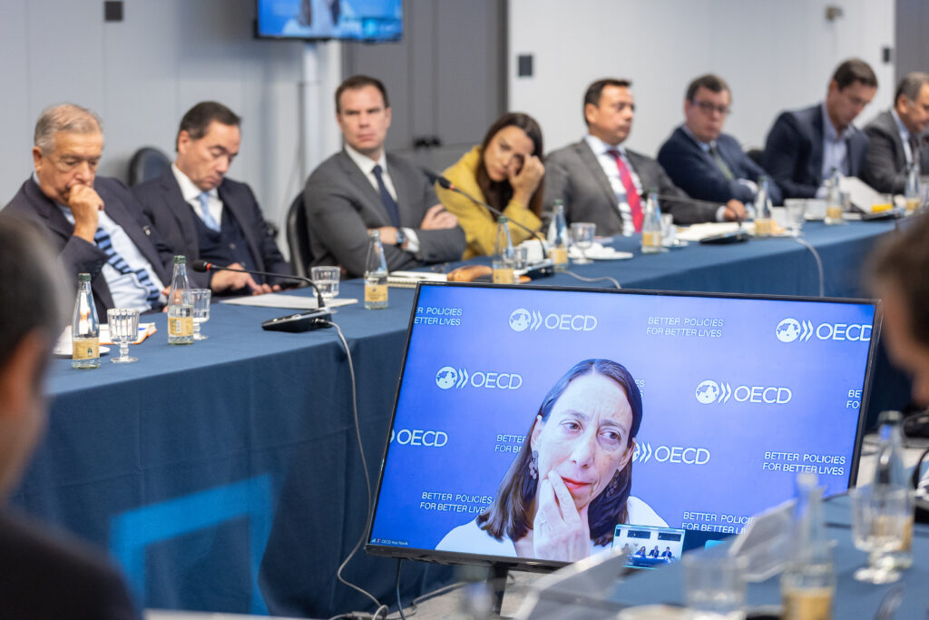 En ese marco, se realizó el primer encuentro del ciclo, titulado “Seguridad económica e inversiones extranjeras en Chile”, instancia que reunió a destacados actores del ámbito público, privado y académico. El conversatorio, liderado por la presidenta de SOFOFA, Rosario Navarro, contó con la participación de Ana Novik, Jefa de la División de Inversiones de la OCDE; Hermann González, Coordinador Macroeconómico de Clapes UC y Socio de Valtin Consulting; Jorge Sahd; director del CEIUC; y el secretario general del gremio, Rodrigo Yáñez, junto con representantes de diversas industrias.